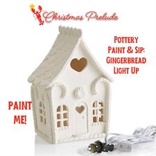 Christmas Prelude - Gingerbread House Light Up - Pottery Paint & Sip Night! 12/13/25