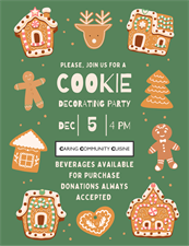 Cookie decorating party for all ages held at Caring Community Cuisine preceding Cape Porpoise Tree Lighting. Beverages available for purchase. Donations always welcome.