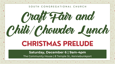 Join us at the South Congregational Church Community House for our annual holiday craft fair and chili & chowder lunch during Kennebunkport's Christmas Prelude!