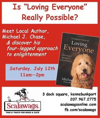 Local author, Michael J. Chase will be at Scalawags on Saturday, July 12th from 11am to 2pm to share dog tales and sign copies of his book, The Radical Practice of Loving Everyone.